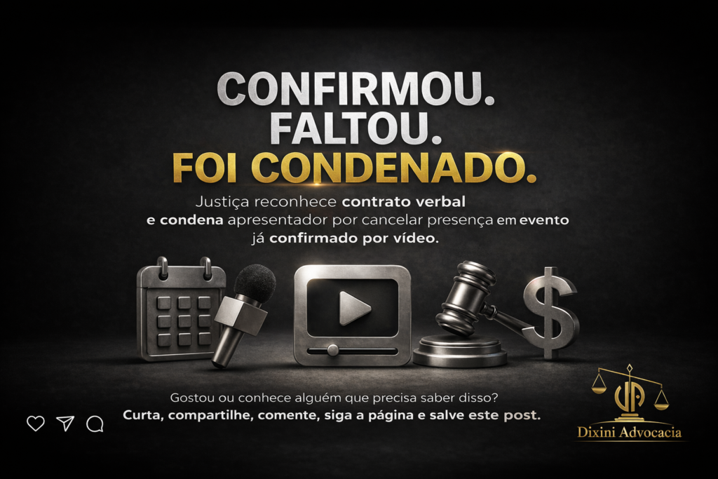 No processo, ficou reconhecido que houve contrato verbal válido, reforçado por vídeo enviado ao autor (Craque NETO) confirmando presença, local e data do evento. Mesmo sem contrato escrito, o juiz entendeu que a conduta gerou obrigação jurídica e expectativa legítima.